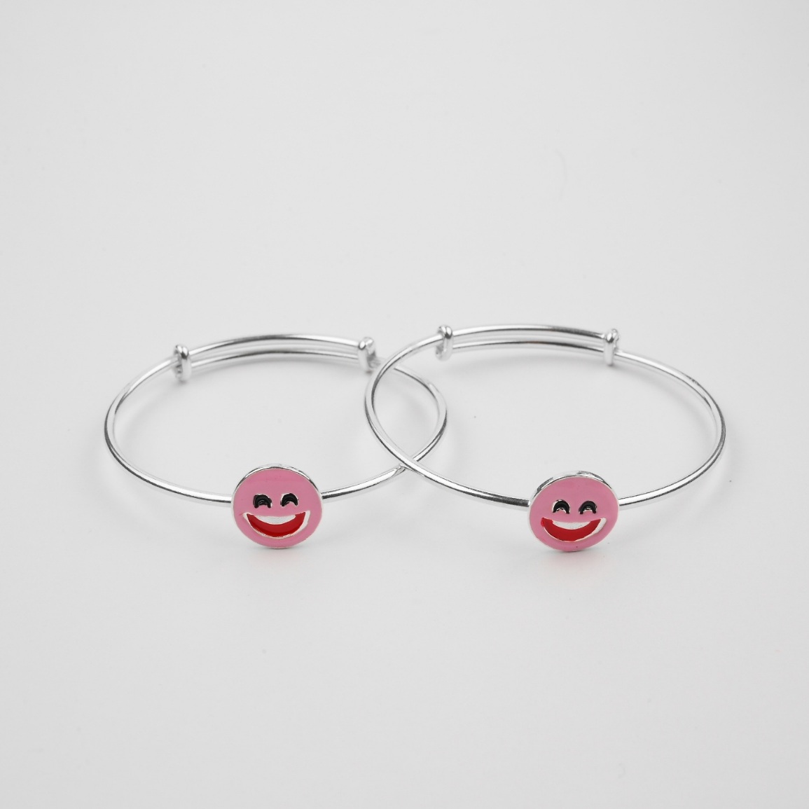 Smiling Face Adjustable Baby Kada/Bangle In Pure Silver (Pair)