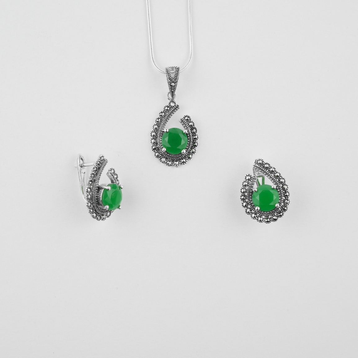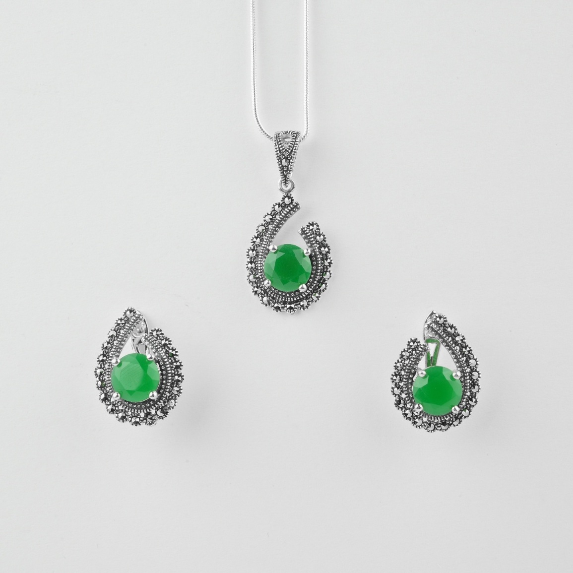 Pendant Set studded with marcasite and semi precious stones, an hand-crafted in pure 925 silver. Give your outfits a perfect touch of this intricate silver beauty.